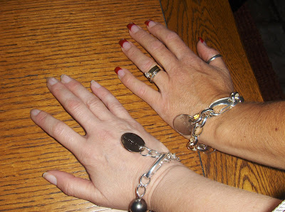 We got cool bracelets from this edgy jewelry company I was introduced to, by my uber chic friend Tawnya. Twisted Silver is fun and trendy. I think it is essential to have jewelry pieces with your kid's birthstones. I have earrings with each of my kid's birthstones. This new bracelet has a grey pearl to remind me of Jordy, my June boy. I bought a peridot piece when Evan was on his mission. It makes me happy and it is better than doing a count down of the time he is gone. I can't do the count down. I just live for the mail and phone calls...Christmas, Christmas. Chant it with me now.